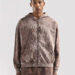Technical details include a double-slider metal zipper with satin finish, integrated side pockets, and wide ribbed cuffs that complete the design with functional precision.